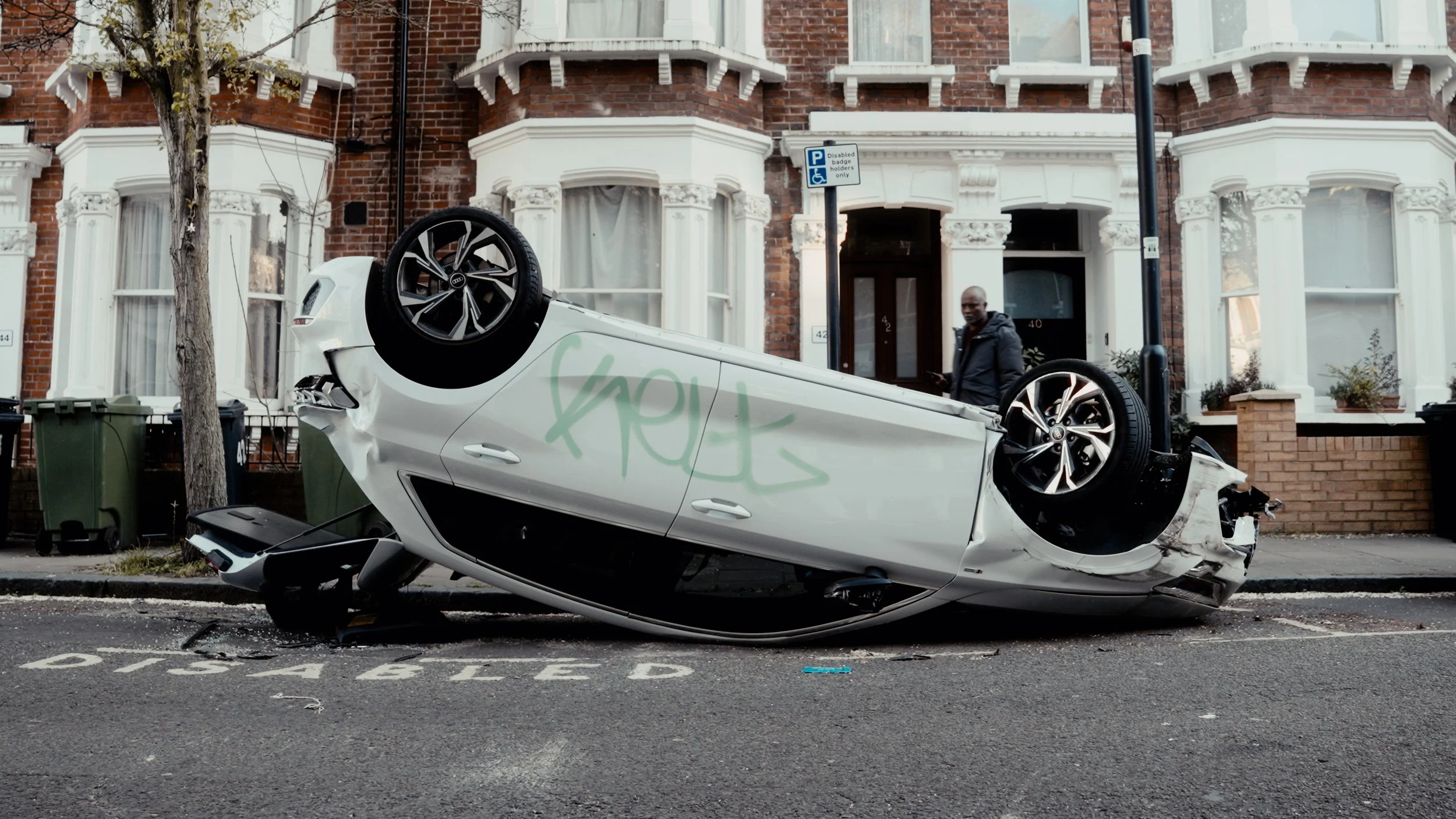 On a quiet London street dividing Lambeth and Southwark, an upside-down car remains untouched for weeks.