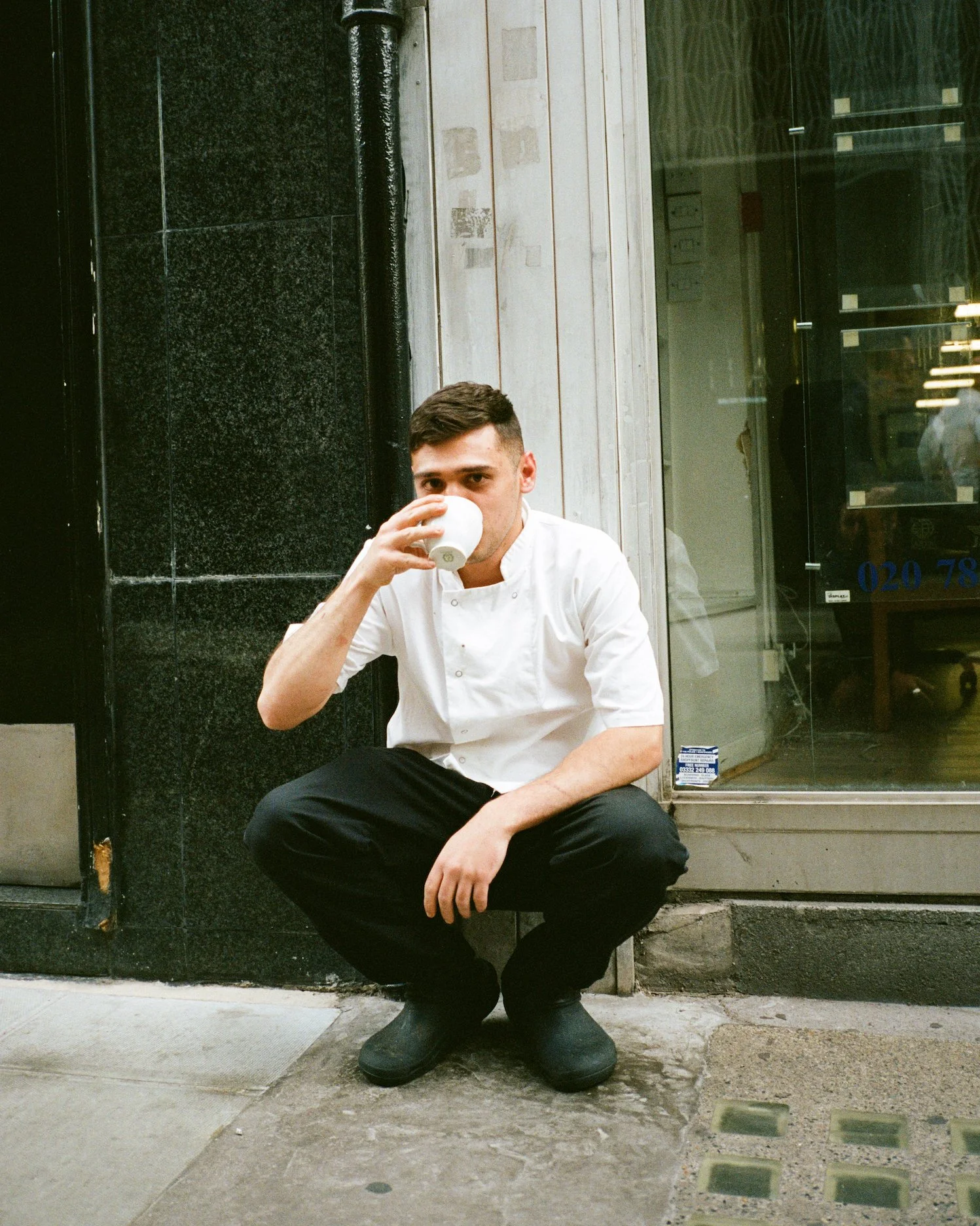 Now I’m alone, still waiting for my friend. The street is empty. The euphoria of the interaction fades. The trees don’t move, not a single leaf, neither my friend’s door. I feel happy about this exchange but can’t help but thinking why he had to take the Bounty out of my hand and put it on the counter, instead of just paying for it.
