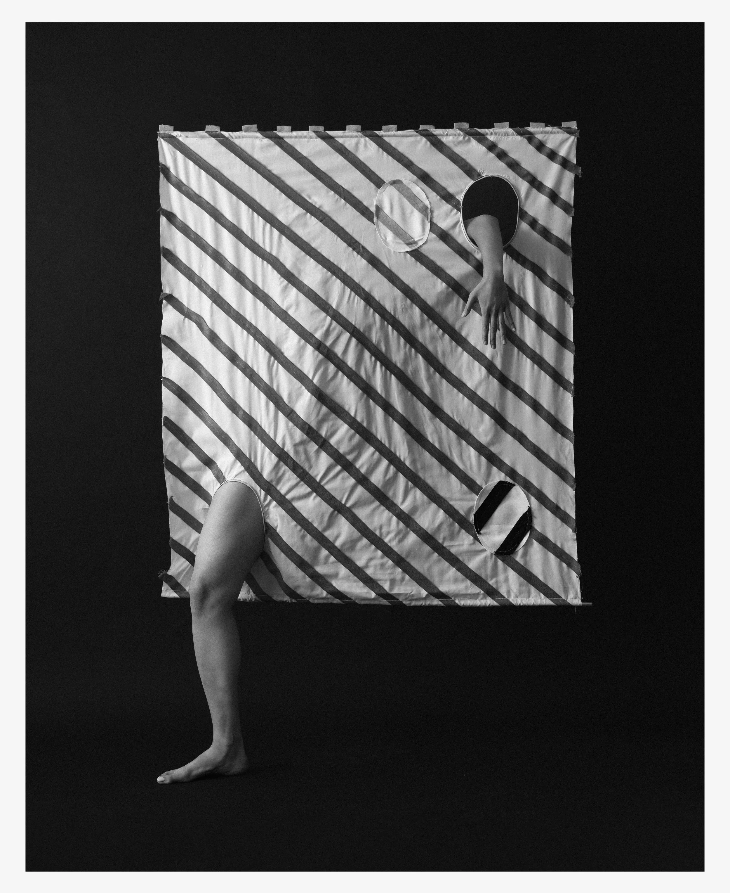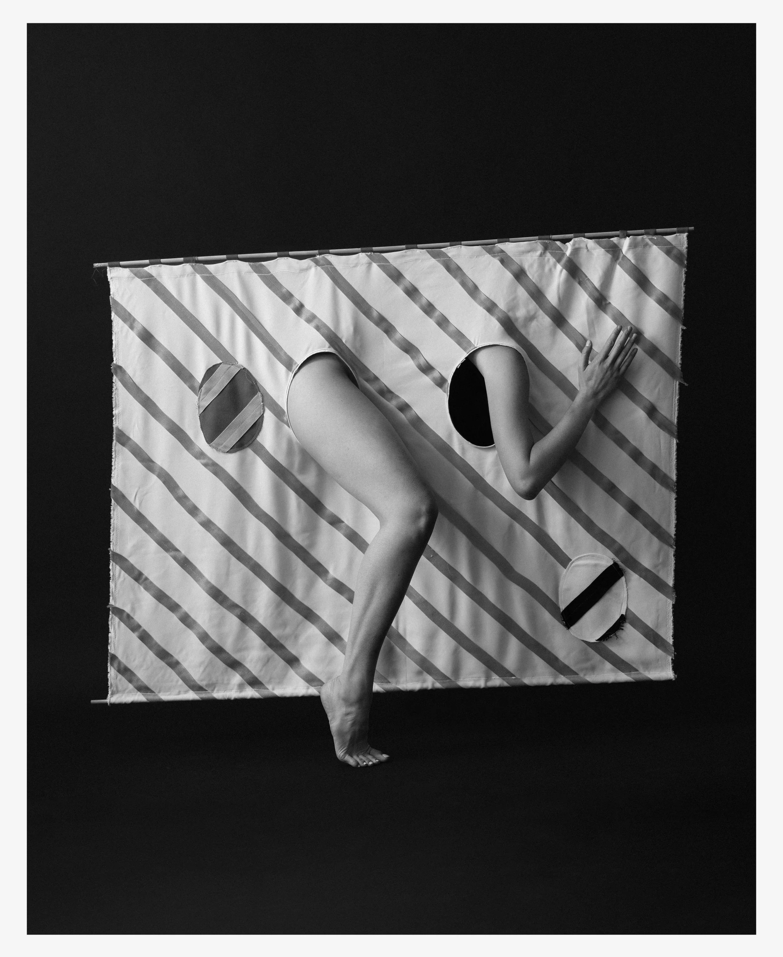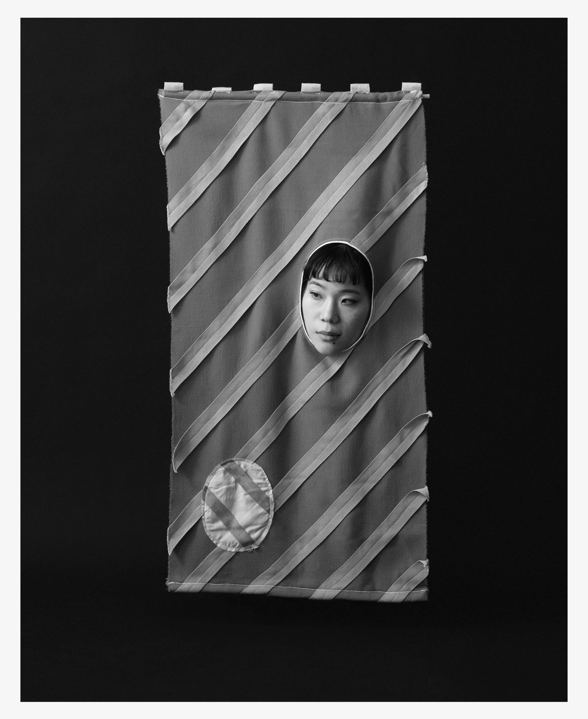 We’ve collaborated on these series of images to explore ‘how culture and infrastructure shape our behaviour and body language’, based on her recent installation with the pieces of fabrics she designed.