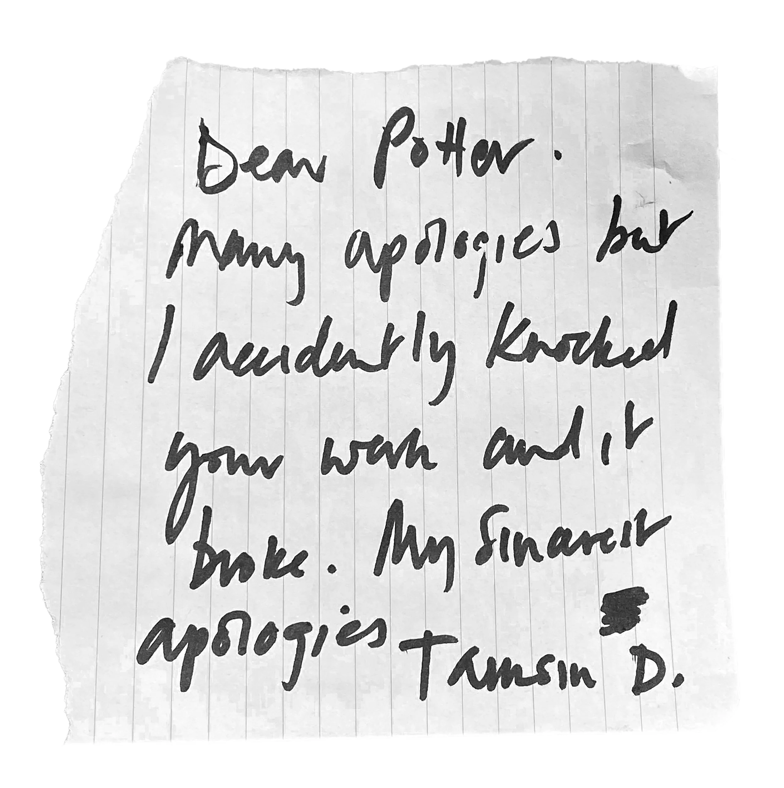 On one of the shelves, I found this note.